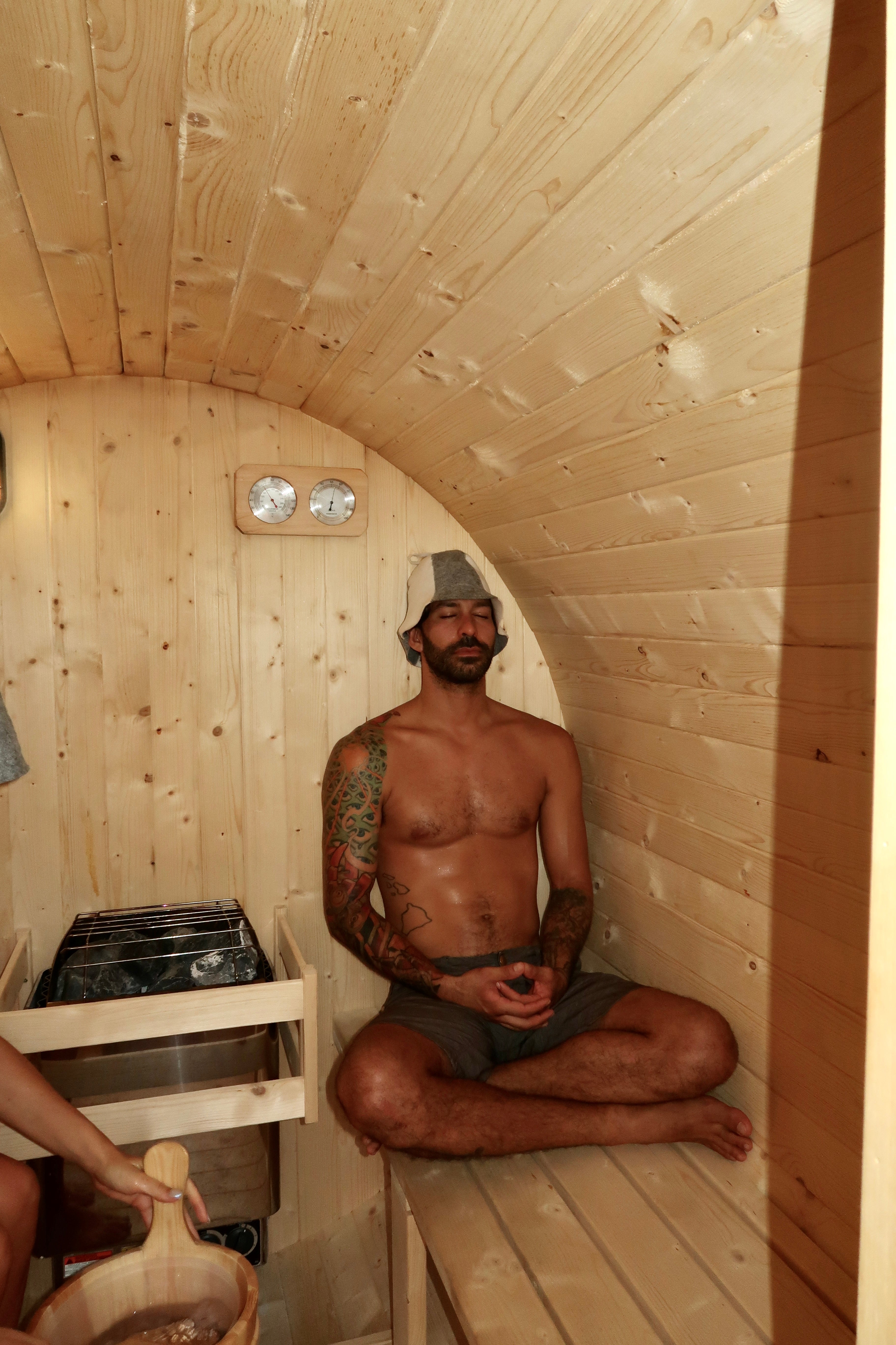 Includes of the CONTRAST THERAPY package along with one additional person, 2 hats sauna protective hats, 2 essential oils, ice bombs for the sauna and it is a 1 hour package